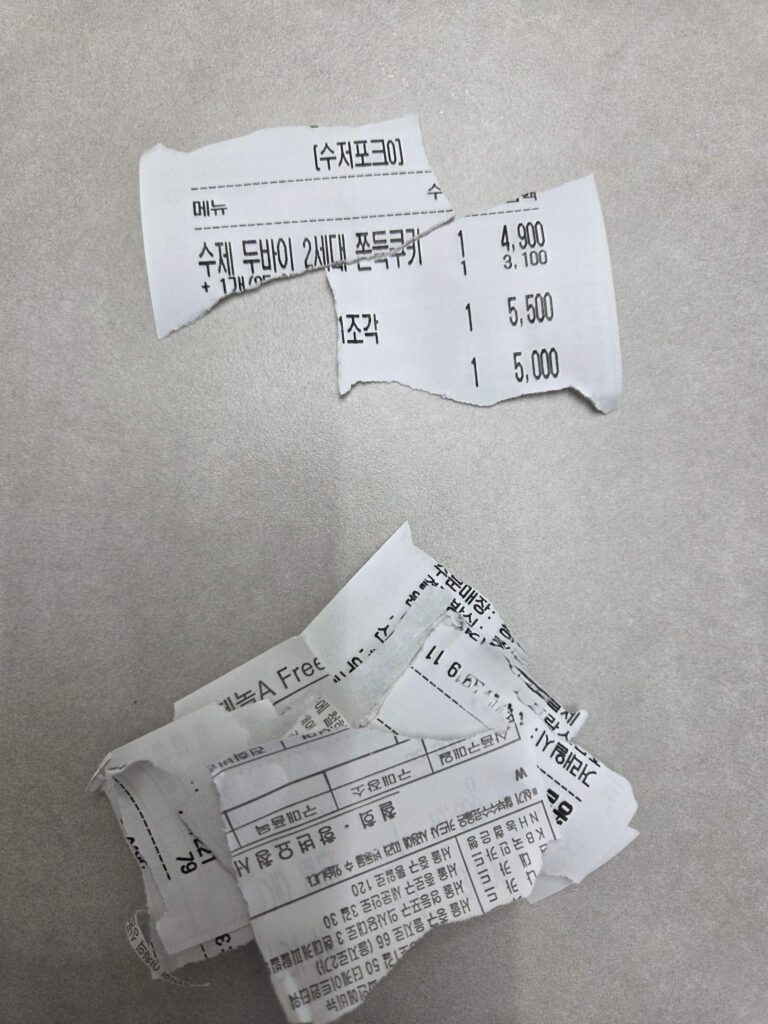 이미 찢어서 버린 영수증을 다시 주워봄 😂